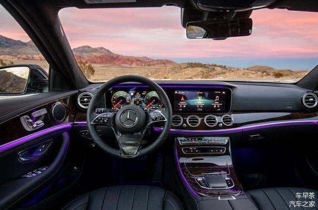 奔驰E级仪表盘与中控多媒体屏幕连为一体式设计,和中控台的曲线氛围灯,在同级车型中是独有的,整体给人不一般的享受。同时还能看到大面积的实木运用,设计有着很出色的辨识度,加上中控台下方的时钟表,满满的豪华感。