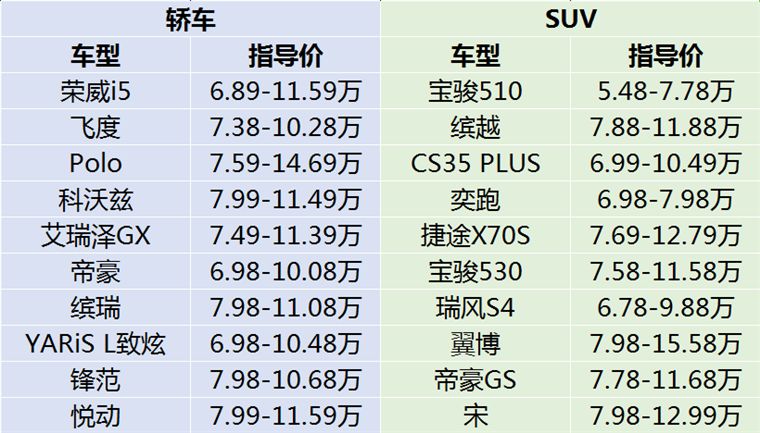 随着汽车市场竞争的愈发激烈,价格亲民的车型也越来越多,这算得上是“穷人”的福音,但随之而来的疑惑也不少,“十万内落地买轿车好还是SUV好”就是很多人想问的问题,今天我们结合市场上相关价位车型的表现,谈谈10万以内应该买轿车还是SUV。