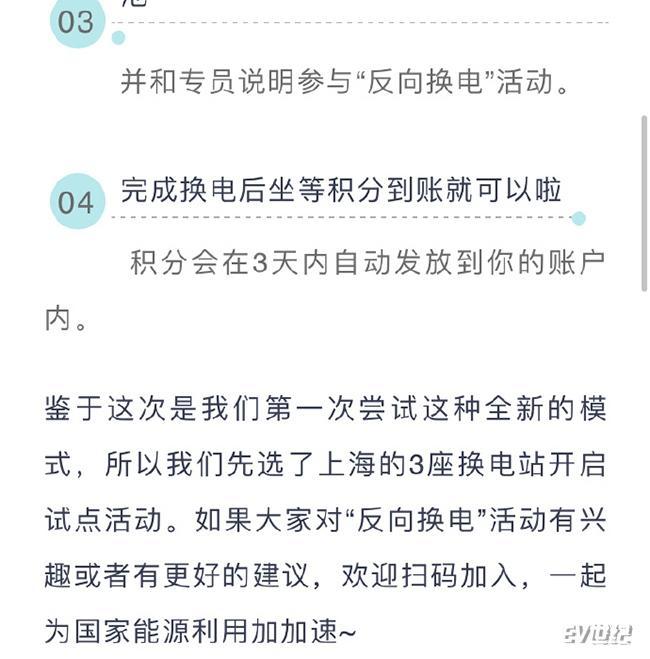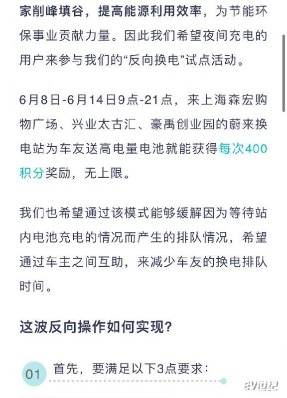 作为回报,参与反向换电的用户将会获得蔚来积分奖励。