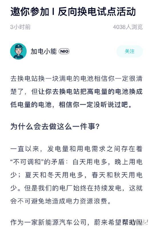 在换电技术和服务方面走在前面的蔚来,日前推出了一项极具创意的活动——反向换电。
