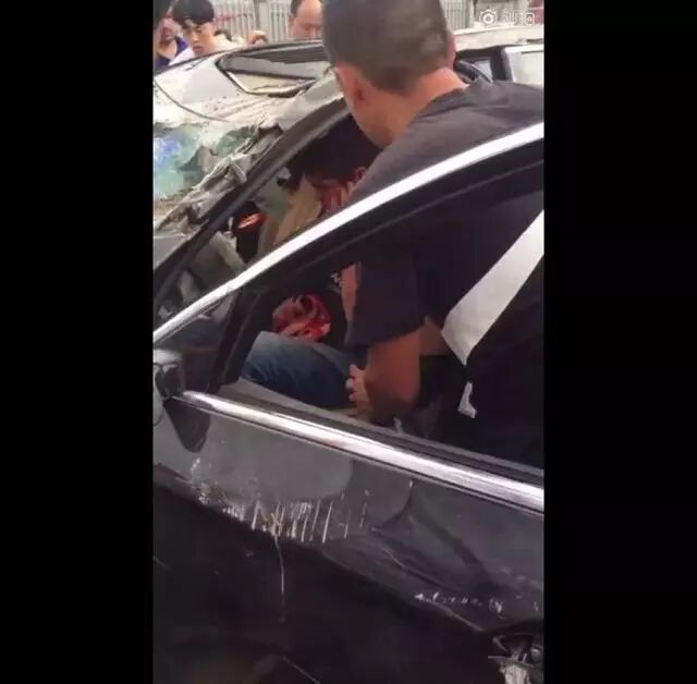 从副驾驶一侧车窗看进去,司机应该是做出了躲避的动作,虽然脸上有明显血迹,但是至少刺入的钢管并没有插到致命位置。