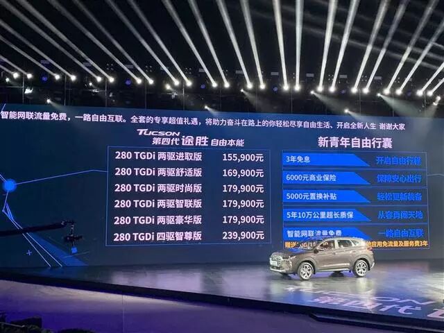 自2005年第一代途胜诞生以来,途胜已在中国走过了13年。在经历了三代传承与进化之后,第四代途胜以风格不凡的造型设计、驾行卓越的自由操控和智能随享的科技装备,全新而来。售价:15.59万-23.99万元,共有6款车可选。