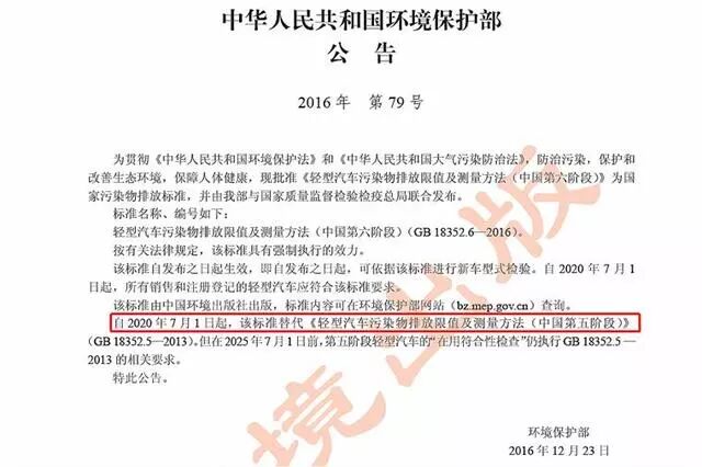 在回答为何提前实施国六标准之前,我们先来简单了解下国六的要求,根据国家生态环境部公示的文件:自2020年7月1日起,所有销售和注册登记的轻型汽车应符合国6a限值要求;自2023年7月1日起,所有销售和注册登记的轻型汽车应符合国6b限值要求。