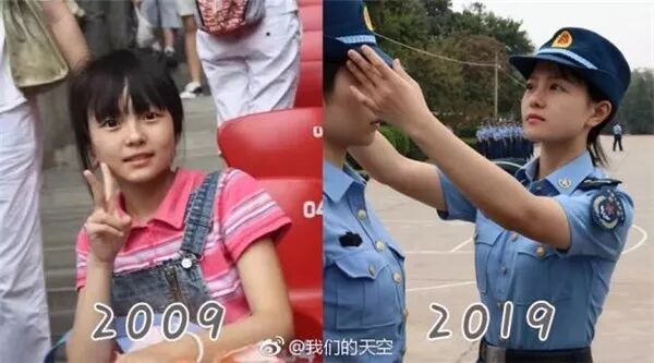 十年前还很年幼,憧憬着未来。十年后褪下稚气,穿上了军装英姿飒爽。