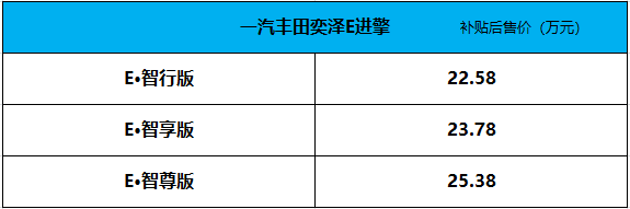 一汽丰田奕泽E进擎上市 补贴后售22.58万-25.38万元 【图】