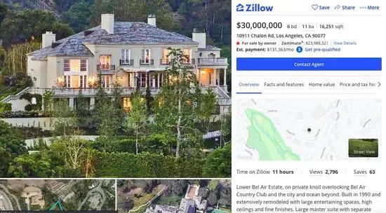 马斯克分别于2012年和2013年以约2,400万美元的总价购买了这两套房产。他在这里共有5处房产,可俯瞰贝莱尔乡村俱乐部。